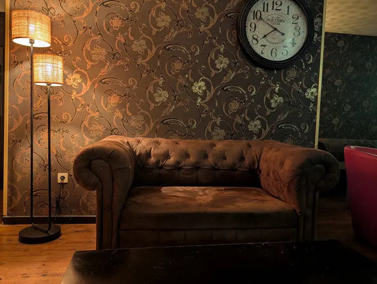 Dès votre entrée, vous découvrez un bar cosy avec boissons sans alcool, gâteaux et friandises à votre disposition (sans supplément bien sûr). Envie d’une cigarette? Un fumoir aux normes est à votre disposition. Confortablement installés autour d’un verre, laissez-vous transporter dans un autre monde…